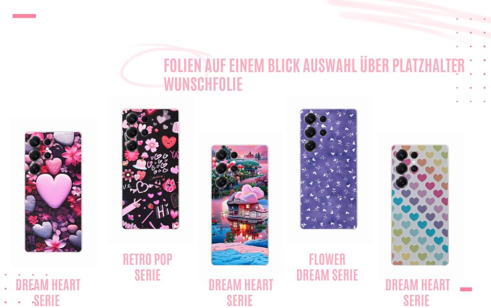 Eine rosa oder schwarze Hülle kombiniert mit deiner Wunsch-Designfolie für einen Look, der sich jeden Tag nach dir anfühlt.